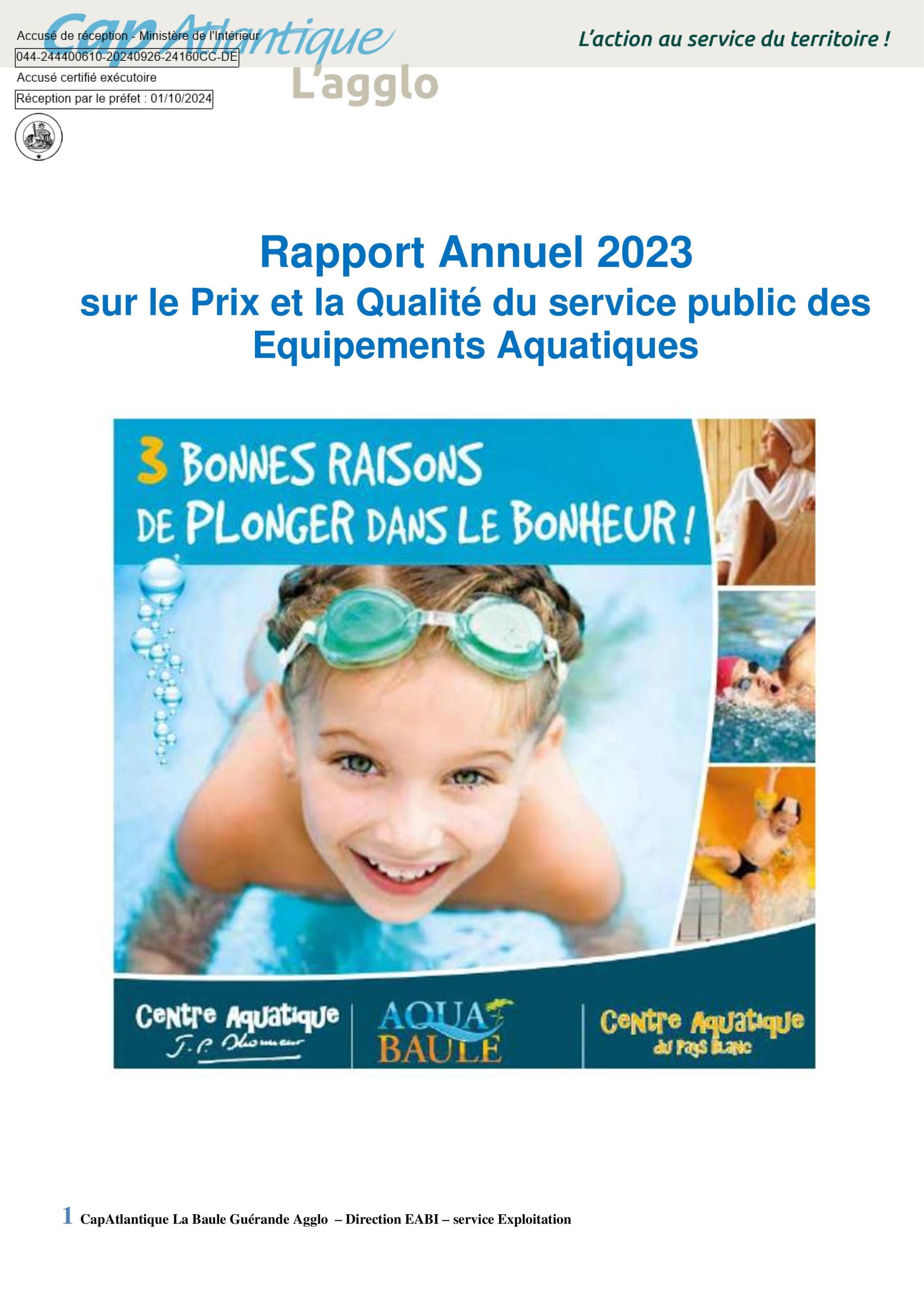 • Rapport annuel 2023 sur le prix et la qualité du service public des Equipements Aquatiques