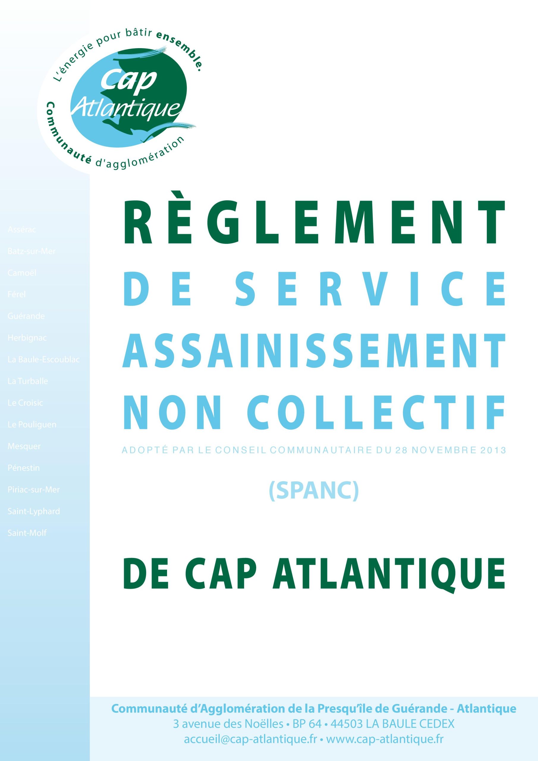• Le règlement de Service Public d’Assainissement Non Collectif (SPANC) de Cap Atlantique