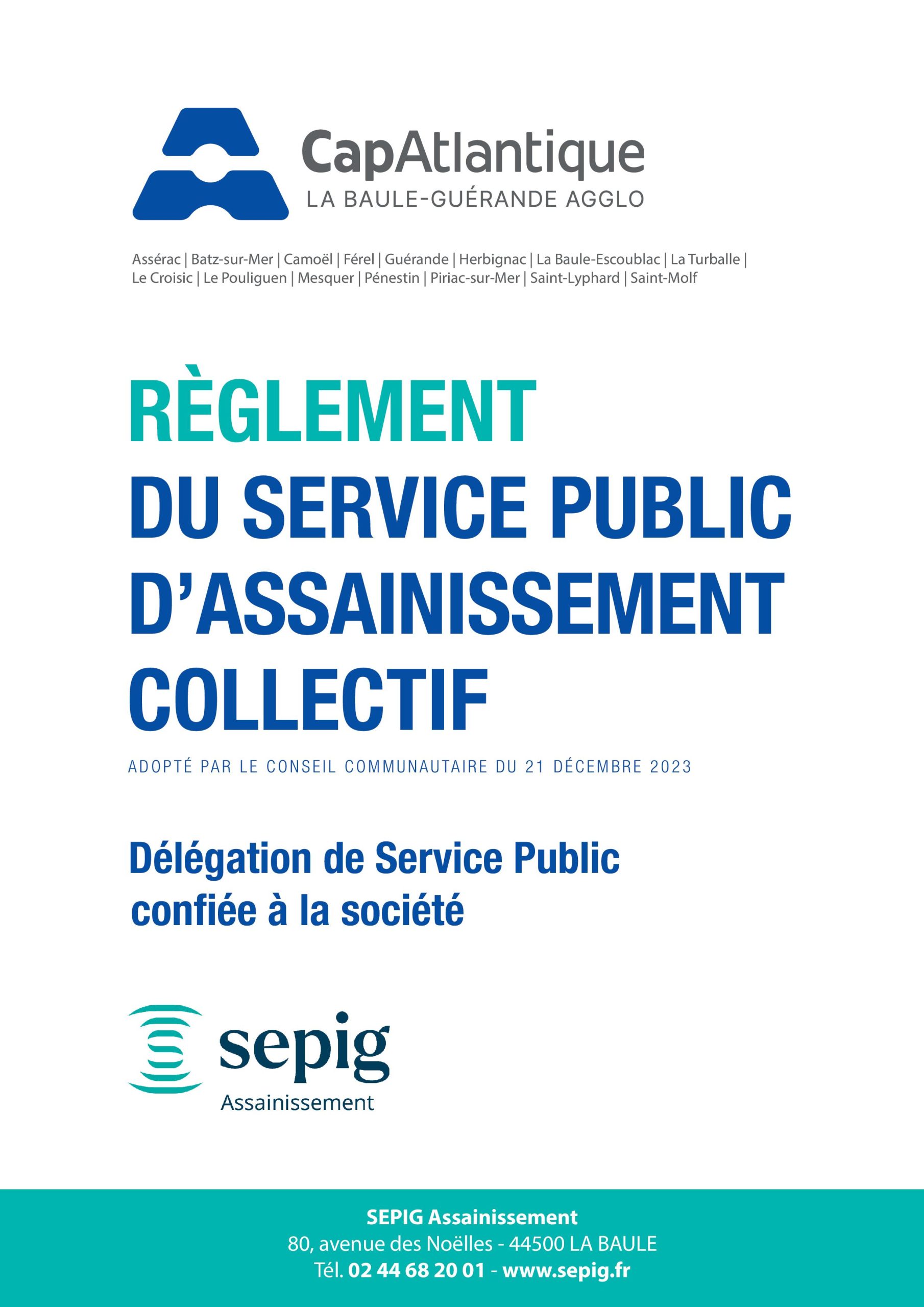 • Règlement du service public d’assainissement collectif de CapAtlantique La Baule-Guérande Agglo