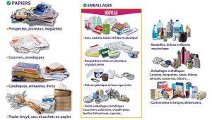 - Il faut séparer les matières (ex : enlever le film plastique des magazines, retirer la barquette en plastique qui est dans la boite de gâteaux…).
