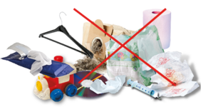 Objets ou jouets en plastique, papiers salis ou gras, papiers photos, papiers peints, mouchoirs, essuie-tout…, articles d’hygiène, textiles sanitaires, carton, verre.